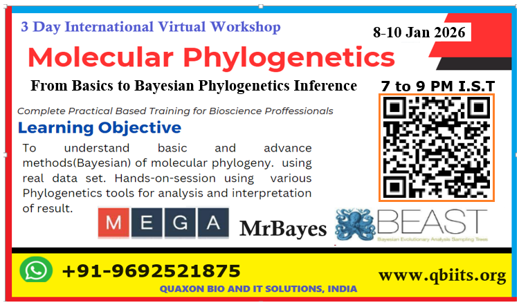 Quaxon Bio & IT Solutions India is going to organize its 68th International virtual workshop on “Molecular Phylogenetics: From Theory to Practice ”
